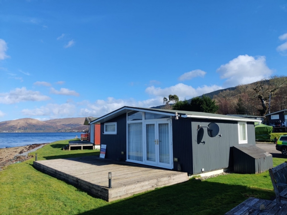 Dunoon Property are delighted to present to the market 3 Eas Mhor Lodges a peaceful private chalet development on the shoures of Loch Fyne. The lodge is beautifully presented lodge with stunning shore front views over Loch Fyne and the Ben Cruachan beyond , two bedroom Shower room, Open plan kitchen diner lounge with French door opening to the decking and directly to the shore side .